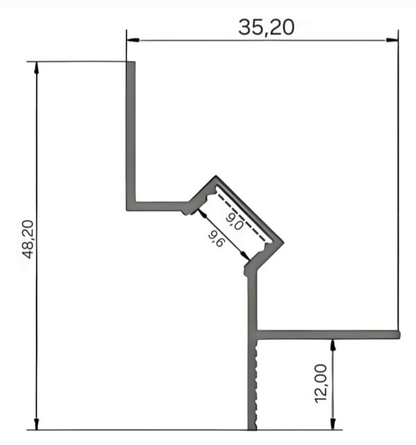Profil de scafa, shadow gap, aluminiu, pentru banda LED, rigips, incastrat, gri/alb
