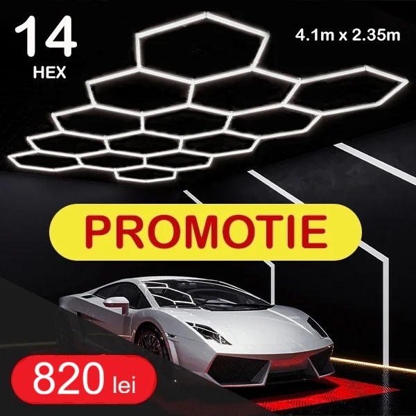 HoneyComb, Lumini LED 14 Hexagon tip Fagure cu Rama Led, pentru Garaj, Atelier auto, Frizerii